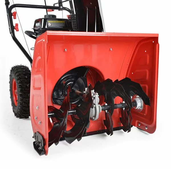 Двоступеневий снігоприбирач - справжня знахідка для швидкого і легкого прибирання снігу. Потужність від двигуна приходить через спеціальні зимові шини з дуже хорошим зчепленням і вагою 79,2 кг саме там, де це необхідно. Профільні колеса приводяться в рух повним приводом. Крім того, маршрутизатор має 6 передніх і 2 задніх передачі, так що ви завжди можете відрегулювати свою швидкість в залежності від стану снігу.