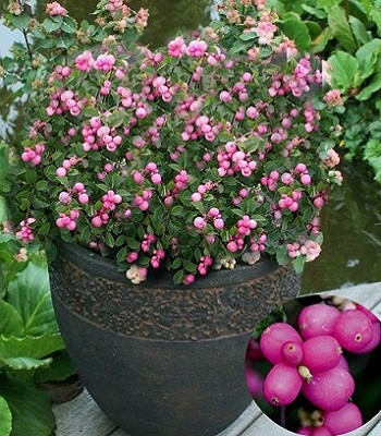 Декоративний кущик з довгими витончено зігнутими пагонами та великими, округлими, розовими ягодами, які, немов, перлини тримаються на кущі. Ефектні ягоди зберігаються всю зиму, забезпечуючи яскравість фарб у Вашому саду навіть взимку і служать ласощами для птахів. А ще це один із кращих медоносних кущів. Кожен рік, ранньою весною рекомендується вирізати зламані та засохлі пагони, інші пагони вкорочувати на одну третину довжини. Такий прийом сприяє омолодженню і кращому цвітінню. Цей сорт вважається одним з кращих для створення низьких і середніх по висоті бордюрів. Ідеальний як грунтопокривна рослина для посадки під дерева і уздовж вулиць. В зимовий період стебла використовують у флористиці для створення квіткових композицій. Зимостійкійкий.