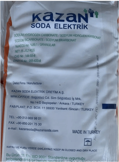 Має соломастий, мильний смак. Коли ви потрапляєте на слизову оболонку ока й ніс, то відразу роздратовуєтеся. Під час частої роботи в атмосфері, забрудненій пилюкою двовуглецевого натрію, може з’явитися подразнення верхніх дихальних шляхів. Передречно допустимо концентрацію пилу бікарбонату натрію в повітрі виробничих приміщень 5 мг/м.