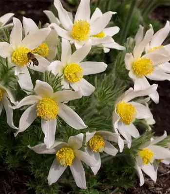 "Alba" неперевершений сорт з шовковистими одиночними білими бутонами, які розкриваються спочатку чашовидні, стаючи потім зірчастими з золотим центром розміром до 8 см. На місці квітів утворюються пухнасті "кульки", які надають особливу декоративність. Після цвітіння рослина формує акуратний кулястий кущик з ажурних розсічених листочків. Віддає перевагу добре дренированим, родючим грунтам. Морозостійкий.