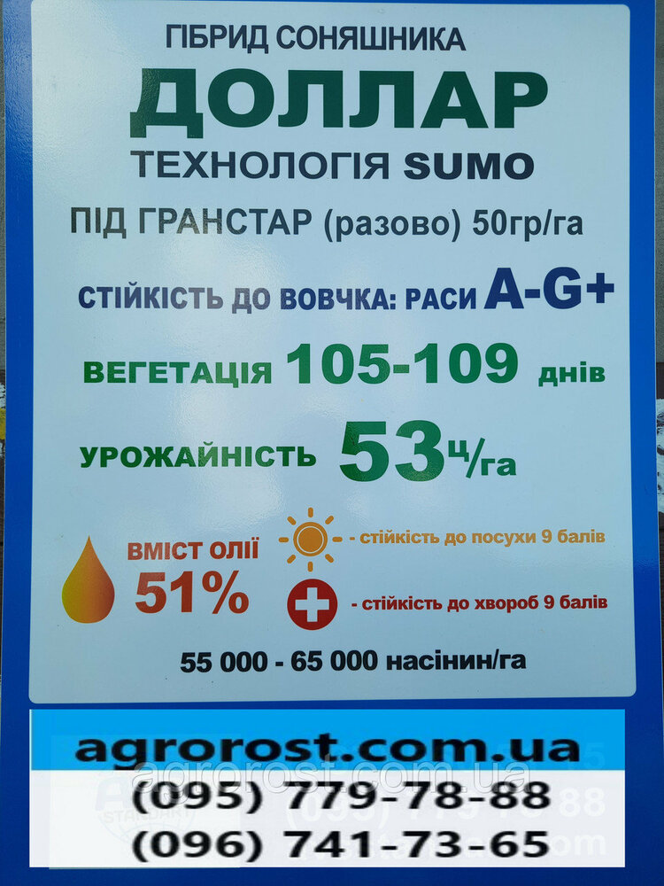Соняшник під гранстар Доллар 47ц/га. Гібрид соняшнику Долар стійкий до семи рас волчка A-G +
