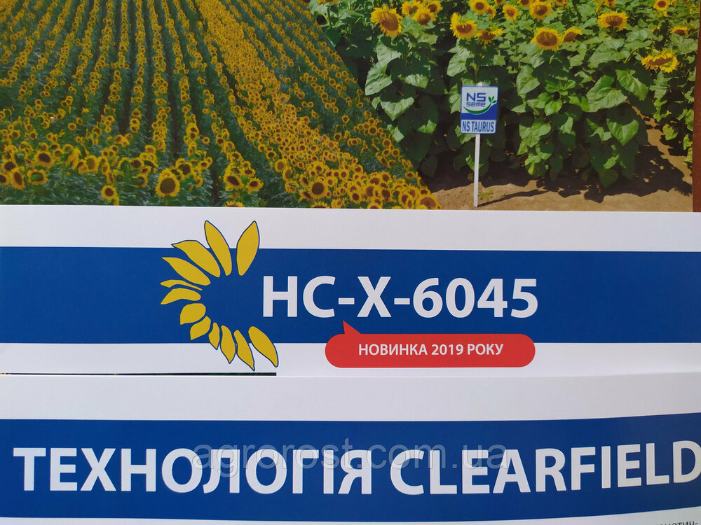 "Насіння соняшника НС-Х-6045 стійкий до гербідіцу Тор-Лайтнінг, Віталайт, Генезіс, Імпекс Дуо, Девайс Ультра, Євро-Ленд, Євро-Лайтнінг в нормі 1-1,2 літра на гектар. З діючою речовиною імазамокс 33 г / л + імазапір, 15 г / л. Також застосовують гербіцид Пікадор аналог Стомп з діючою речовиною імазетапір 100г / л. Повне знищення соняшникового вовчка та усіх видів бур'яна на полі".