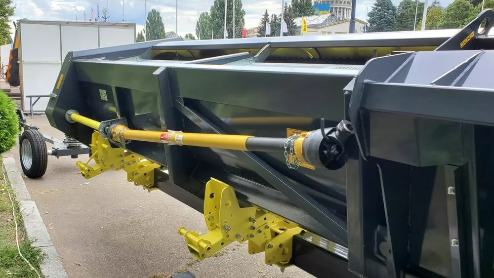 Нова конструкція і спосіб кріплення відвідного щита, який розташований перед мотовилом, і оцинкованої захисної сітки на нім, дозволяє оптимально захищати робочу зону шнека і мотовила, виключаючи втрати продукту. Діапазон регулювання висоти щитка над стеблепіднімачами від 180 до 450 мм дозволяє прибирати соняшник будь-яких сортів при будь-якій висоті і його врожайності.