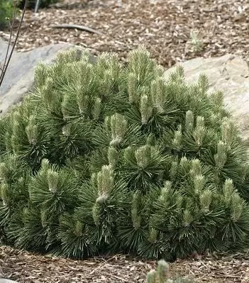 Карликовий сорт з щільною, густо конічною формою крони з численними пагонами, для яких характерні довгі дрібні голки довжиною до 10 см розташованих в пучках по 2 штуки. Хвоя приємного зеленого кольору. Дуже ошатними виглядають молоді весняні кремово-білі пагонами. До грунту не вимогливий. Добре виглядає в одиночних і групових посадках. Морозостійкий.