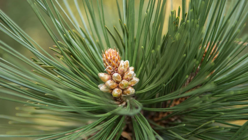 Голки, зібрані попарно, жорсткі, темно - зелені, товсті та загострені, 8 - 15 см завдовжки.