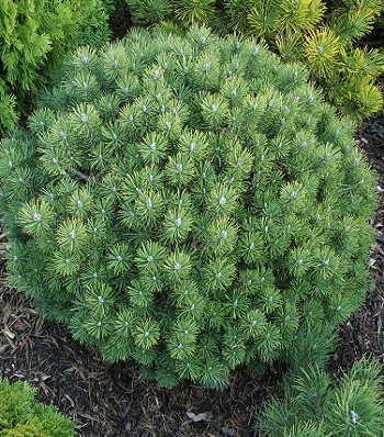 Карликовий сорт кулястої форми. Крона яйцеподібна або широкопірамідальна, щільна. Хвоя блискуча, темно-зелена, жорстка на молодих погонах дуже коротка. Дуже погано росте в тіні, страждає від поєднання високої температури і низької вологості. Добре відчуває себе на будь-яких добре дренованих ґрунтах, від кислих до лужних. Рекомендується для невеликих садів, кам'янистих садів та контейнерів.