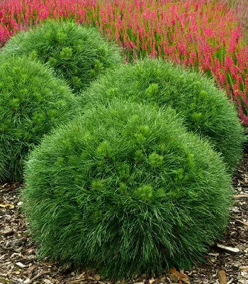 Повільноростучий сорт з компактною кулястою щільною кроною. Хвоя довга, темно-зелена, трохи підкручена. Морозо- та посухостійкий. До ґрунтів не вибагливий. Рекомендується для альпінаріїв та різних невеликих садів, для композицій з невеликими чагарниками, та як солітер.