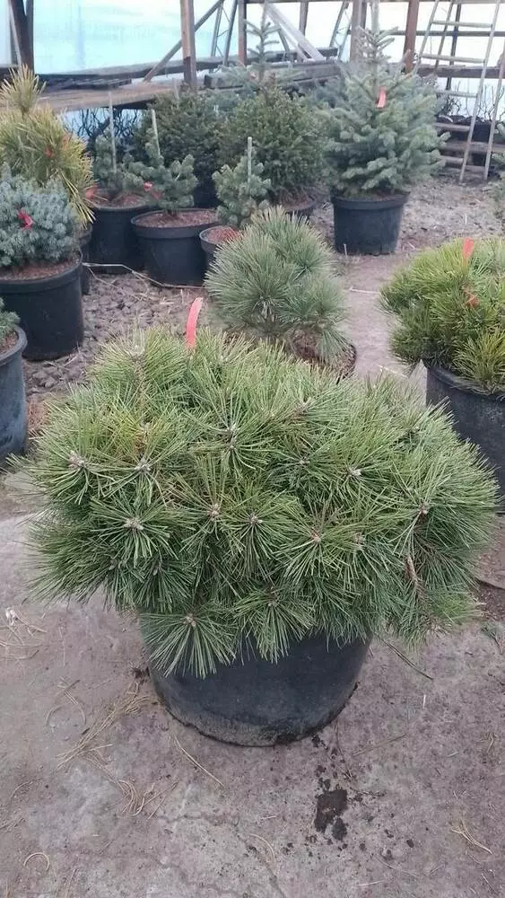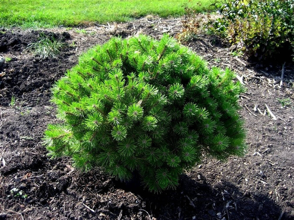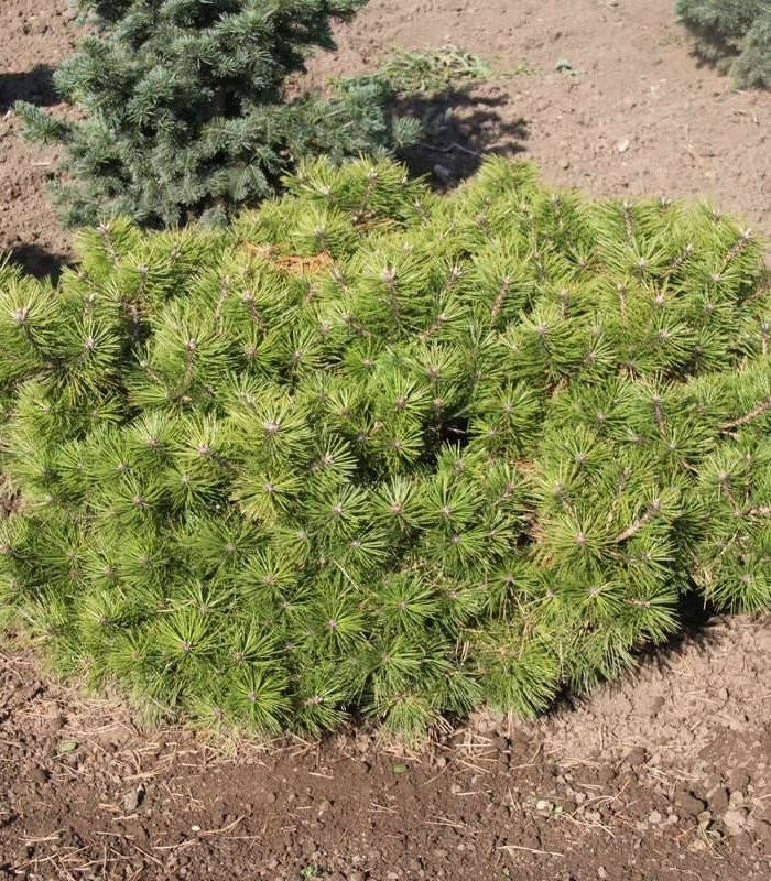 Форма: щеплений декоративний сорт сосни густоквіткової, був виявлений в середині 1970-х років. Карликовий сорт округлої форми. У віці 10 років досягає близько 0,6 м висоти. Крона дуже густа, подушкоподібна, притиснута до землі.