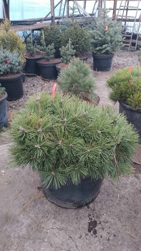 Догляд взимку: з кінця лютого до кінця березня в сонячні дні необхідно вигрібати сніг з внутрішньої частини кулястих форм сосен, або затінювати білими тінівками для того, щоб не допустити утворення крижаної / сніжної оптичної лінзи, яка за кілька сонячних днів може випалити внутрішню частину крони подушкоподібних хвойників. Якщо лід закріпився у внутрішній частині кулі і не руйнується без пошкодження хвої - обсипте лінзу чорною землею або низинних чорним торфом - в перший же сонячний день лід розтане без опіку рослини.