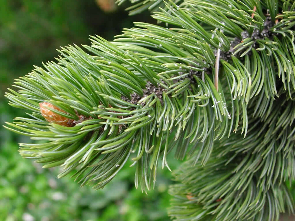 Хвоя: хвоя від темно-зеленого до голубувато-зеленого кольору, хвоїнки 2,5-4 см завдовжки, дуже щільно розташована.