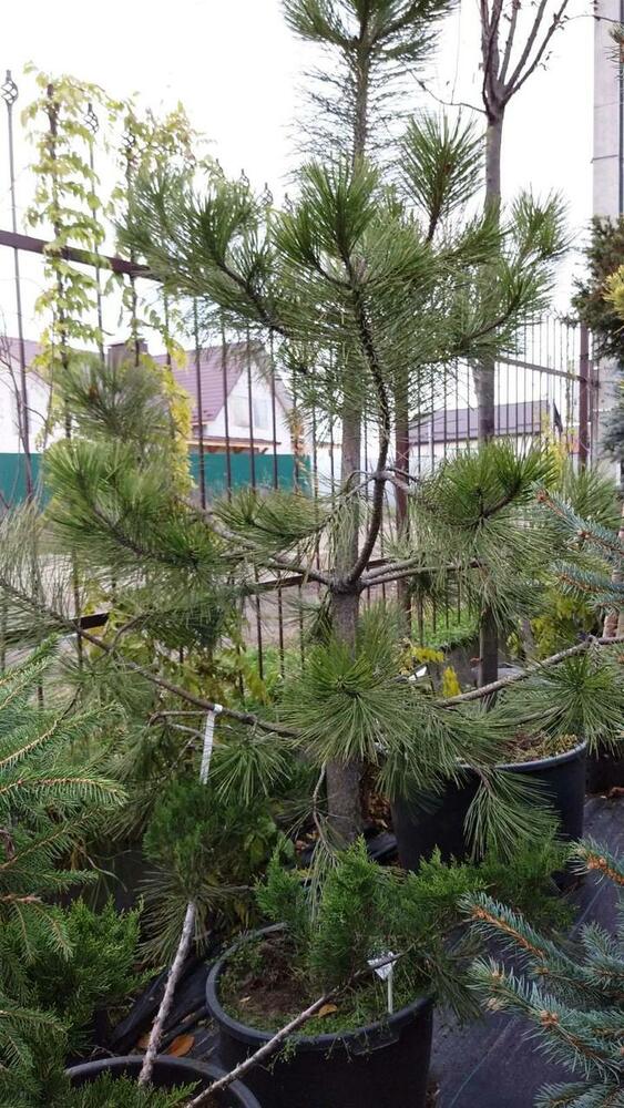 Сосна жовта (Pinus ponderosa) С80 250 - хвойне швидкоросле декоративне дерево. Має дуже характерну кору оранжево-коричневого кольору. Голки зібрані в групи по 2 або 3 разом. Має переваги в вирощуванні оскільки не примхливий в догляді та стійкий до посухи. Можна висаджувати в живі огорожі.
