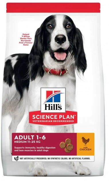Корм для дорослих собак Hill's Science Plan з куркою спеціально розроблений для забезпечення енергетичних потреб собак у розквіті їхнього життя. Вироблено з високоякісних інгредієнтів, що легко засвоюються.