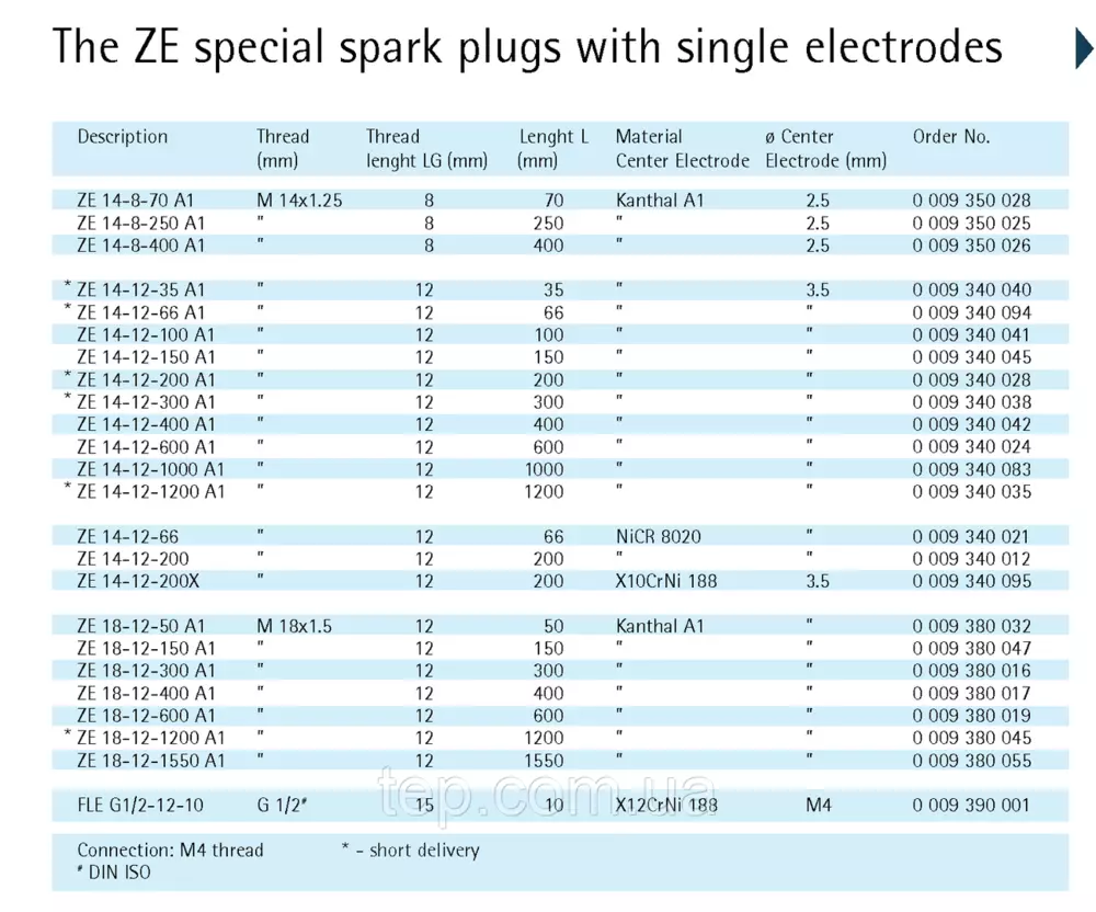 ZE 18-12-50 A1 M 18x1,5 12 50 Фехраль (Kanthal A1)   0 009 380 032