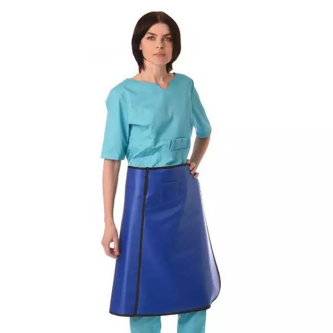 Спідниця рентгенозахисна одягається перед проведенням рентгенологічного дослідження і закріплюється на поясі за допомогою замка або липучки.