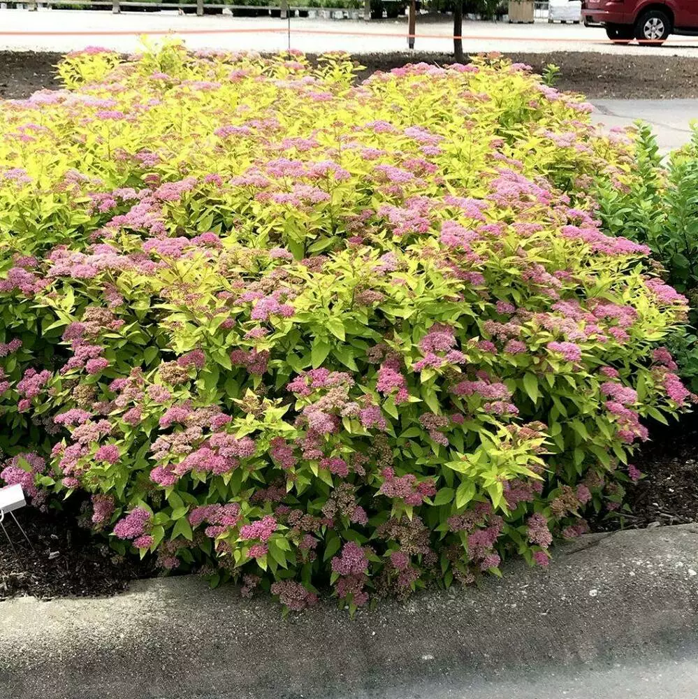 Ефектний карликовий чагарник, із щільною напівкруглою кроною. Висота до 60 см. рясно цвіте влітку рожевими квітами. Цінний грунтопокривний, невибагливий, з контрастним забарвленням листя.