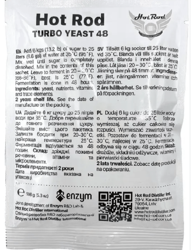 Перші професійні українські Турбо дріжджі Hot Rod 48 для цукрових браг.