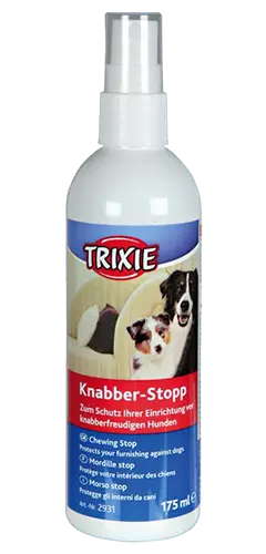 Спрей - антигризин для собак - захищає предмети від зубів тварин. Спрей є ідеальним захист предметів. Препарат має нейтральний запах і складається із дрібних кристалів, які завдяки гіркому смаку не дозволять собакам гризти предмети домашнього побуту.