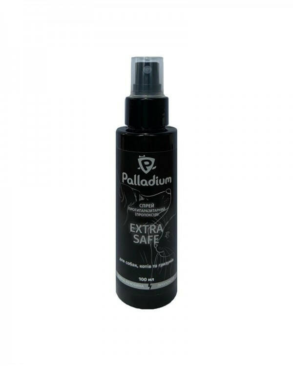 Спрей від паразитів Palladium Extra Safe - інсектоакарицидний препарат, який призначений для знищення бліх, вошей, власоїдів та іксодових кліщів, що паразитують на тваринах, а також для захисту від їх нападу.