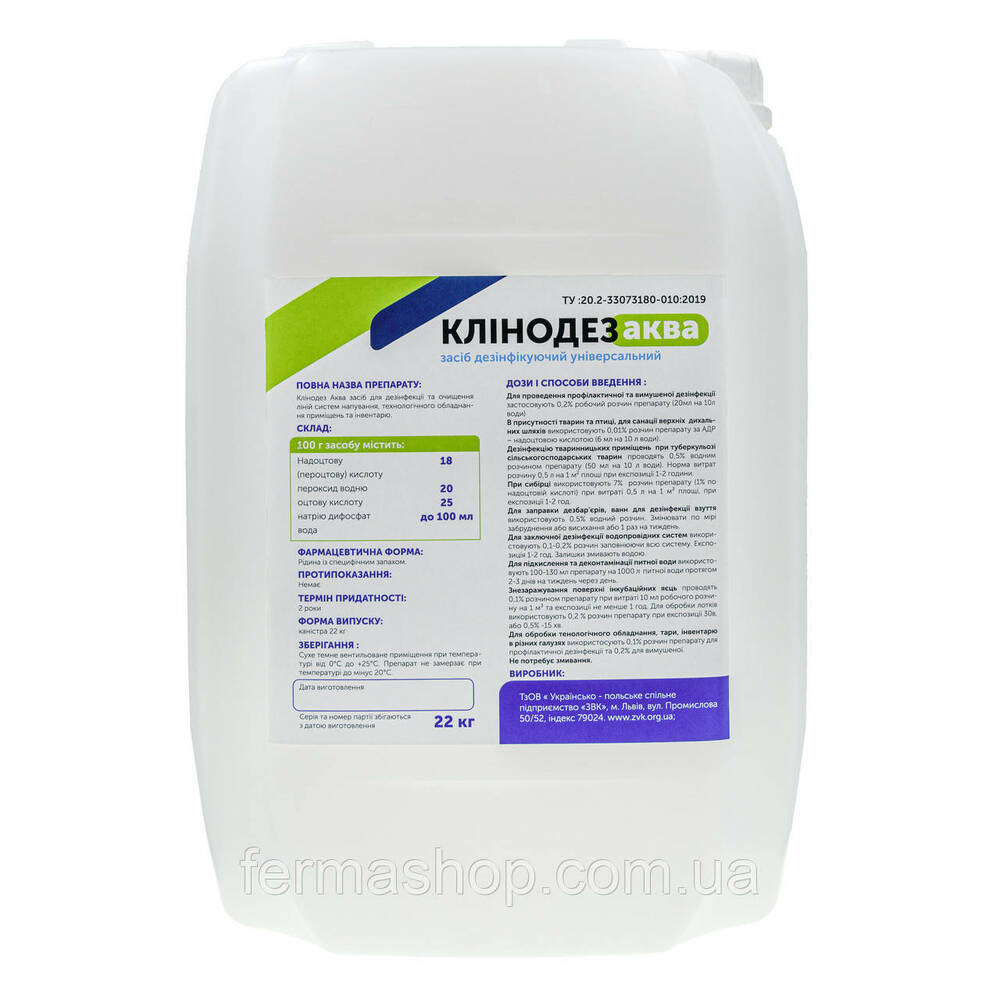 Клінодез Аква – застосовується для автоматизованої санітарної обробки систем на великих виробничих підприємствах (молочне виробництво та інші види харчової промисловості з метою обробки приміщень, інвентарю та систем (контейнерів, трубопроводів, пов’язаних з виробництвом, транспортуванням, зберігання).