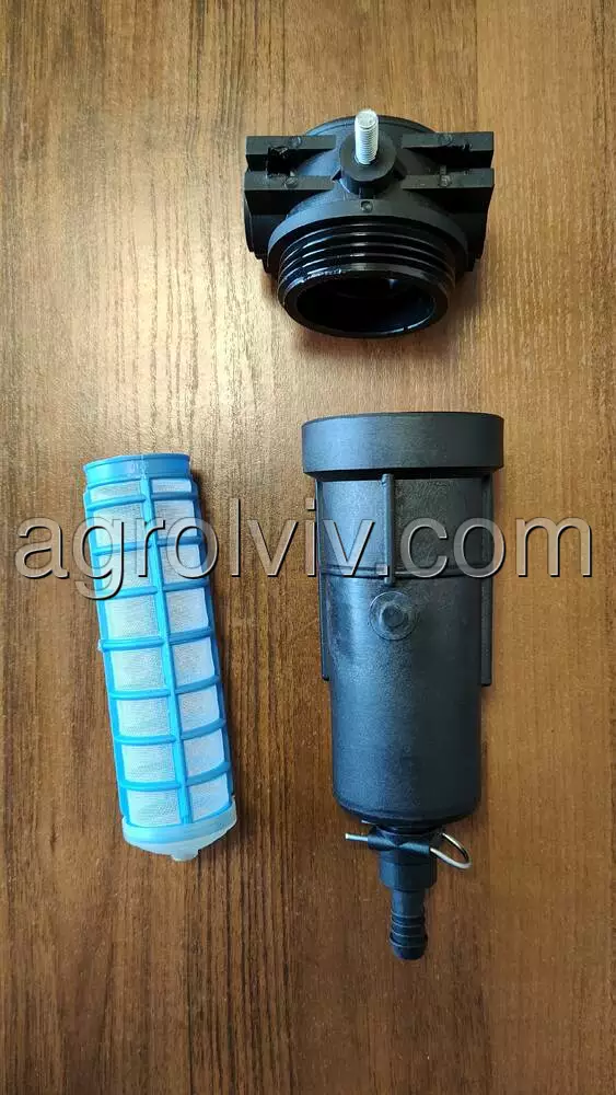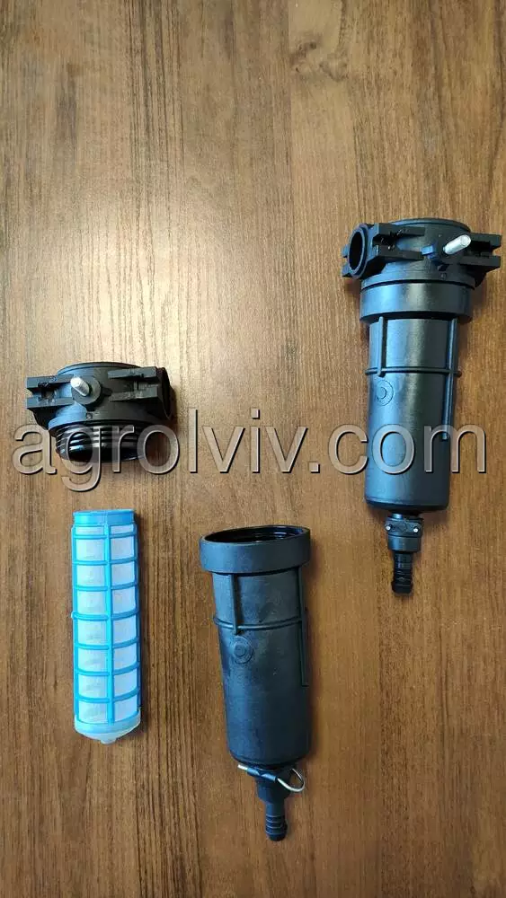 Стакан розподільника оприскувача агропласт в зборі. Підходить для розподільників оприскувачів агропласт та інших подібних виробників. Складається з двох частин: верхньої яка має два отвори та круглої нижньої яка має внутрішню різьбу. В середині міститься сито.