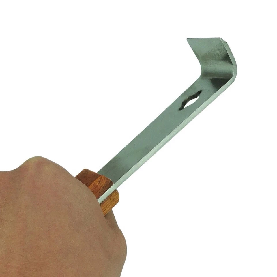в ульї, для поділу корпусів або магазинних надставок, також у стамески є цвях. Лезо стамески виготовлені з неіржавкої сталі, краї заточені, один кінець зігнутий під прямим кутом, ручка — дерево.