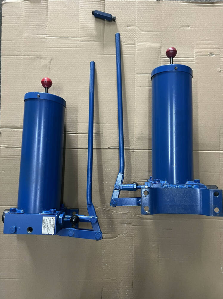 7. Прокачати вручну мастило до живителів. Нагнітання мастила здійснювати доти, поки не відбудеться різке підвищення тиску в магістралі, що є доказом того, що живильники сробили. Якщо під час прокачування мастила тиск відразу різко підвищується, треба перемкнути золотник розподілювача в протилежне вкрайе положення.