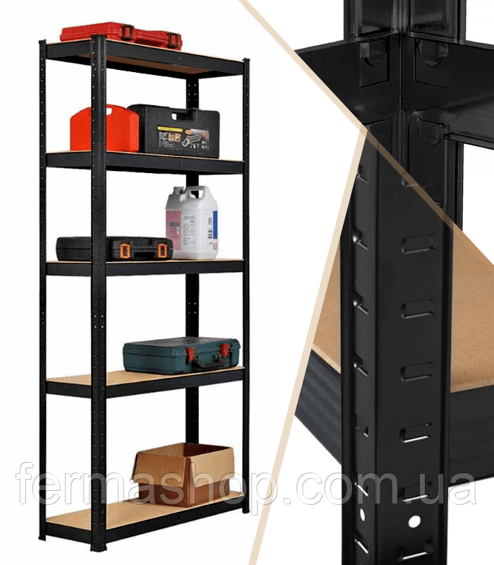 Стеллаж металлический (150 х 70 х 30 см) 5 полок, Черный