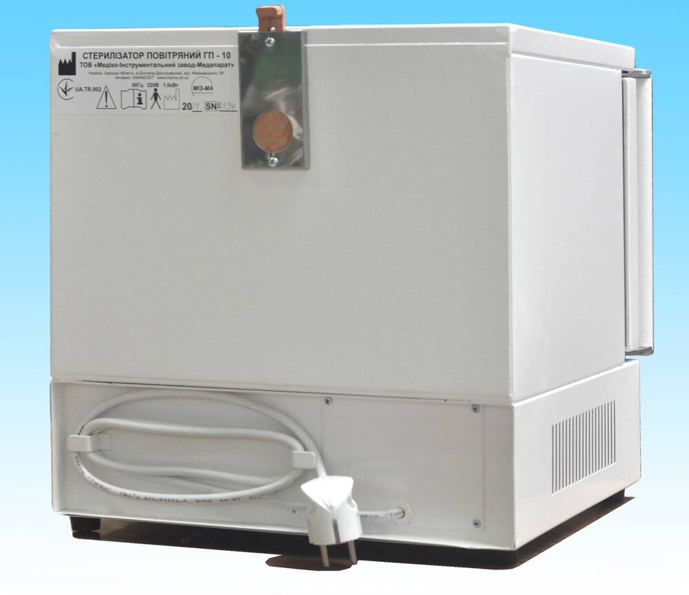 Повітряний стерилізатор ГП-10 призначений для повітряної стерилізації хірургічних інструментів, термостійких шприців та голок (з позначкою +200 °С), скляного лабораторного посуду, теплостійких порошків та інших медичних виробів. Також може використовуватись для дезінфекції та сушіння скляних і металевих виробів. Завдяки автоматичному керуванню, високоточній індикації та сучасним захисним функціям стерилізатор забезпечує надійність і безпеку у роботі.