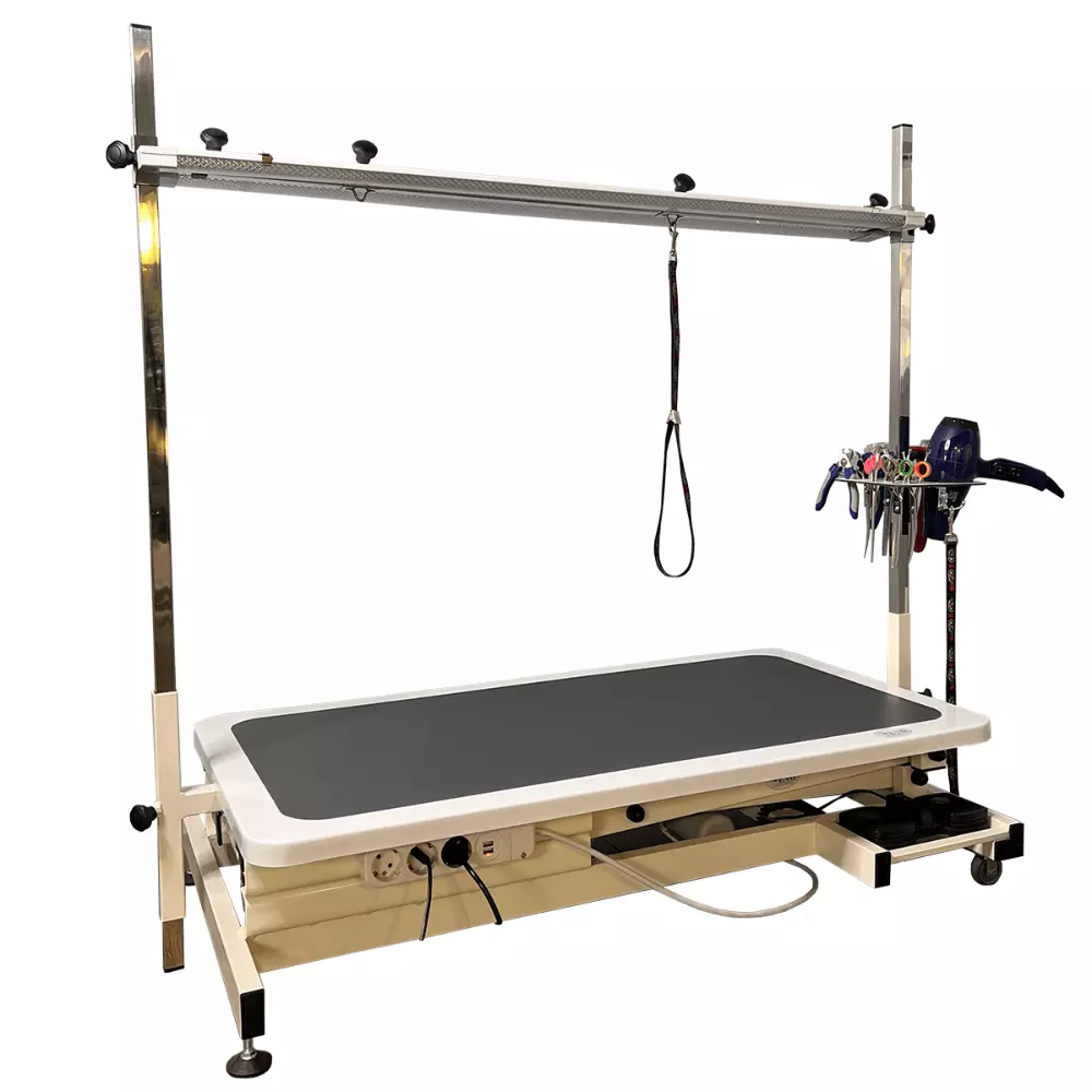 Стіл для грумінгу EVG МРІЯ — це професійний електричний стіл для стрижки собак і котів усіх порід, розроблений для щоденної роботи у грумінг-салонах та ветеринарних клініках. Модель поєднує ергономіку, високу вантажопідйомність і продуману конструкцію, що забезпечує комфорт як для тварини, так і для грумера.