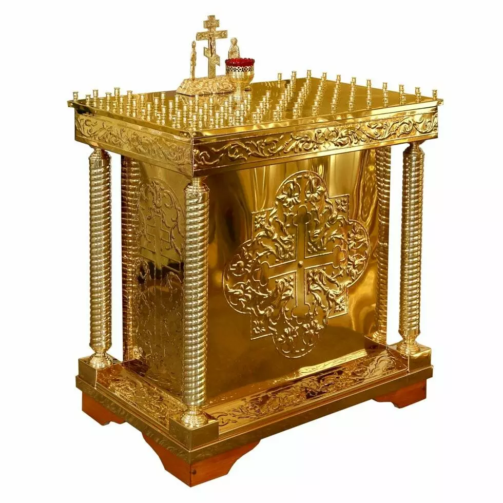 Купити готові панахидні столи, кришки, церковні свічники – кануни можна у будь-якій кількості за цінами виробника. Ми також виготовляємо церковні меблі та начиння на замовлення за кресленнями та побажаннями замовника. Надсилаємо товари по всій Україні та в країни СНД.