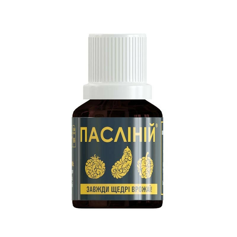 Пасліній – стимулятор росту для підвищення зав’язування плодів пасльонових культур, покращує зав’язування плодів томату, перцю, баклажану, особливо за несприятливих умов, прискорює їх зростання і дозрівання..