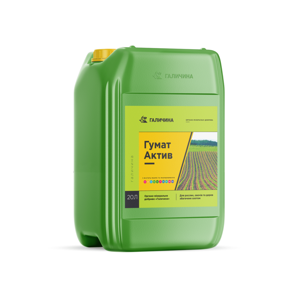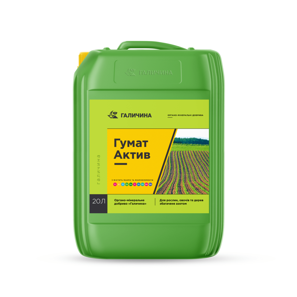Органо-мінеральне Добриво Гумат Калію АКТИВ (із збільшеним вмістом азоту). ТМ Галичина, 20 л.