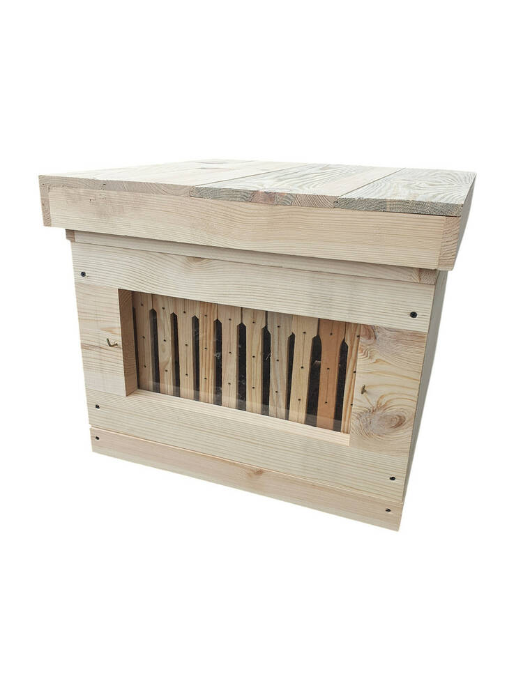 Стінка вулика з оглядовим вікном на 12 рамковий вулик –  призначена для проведення візуального огляду та оцінки стану бджолиної родини не відкриваючі дах вулика і не турбуючи бджіл.