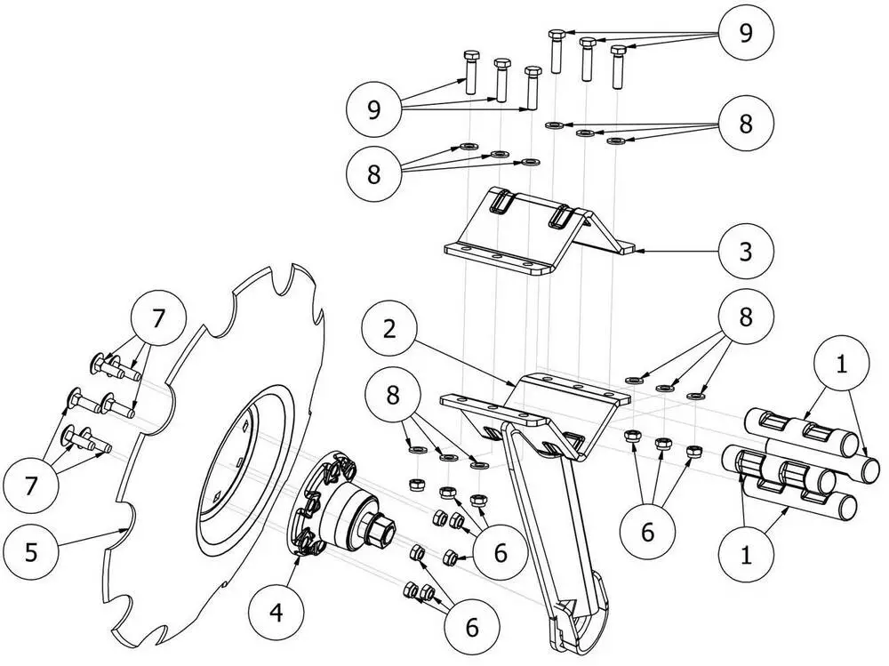 Стійка права з диском 510 дискової борони АGRO-MASZ модель AT (можливий продаж окремих комплектуючих)