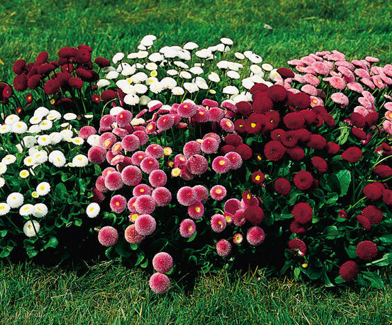 Маргаритка Помпон - декоративна трав’яниста дворічна рослина, висотою 15-20 см. Формує великі суцвіття - кошики, діаметром 6 см, білого, червоного, рожевого кольорів. Насіння висівають у відкритий грунт з кінця червня до середини липня. Зацвітає на другий рік в травні і цвіте рясно до липня. Рослина морозостійка, світлолюбна. Маргаритки можна пересаджувати в квітучому стані. Використовують для оформлення бордюрів, рабаток, мавританських газонів, а також для вазонів в будинках. Добре поєднується маргаритка з весняними культурами - гіацинт, тюльпан, нарцис, незабудка, віола.