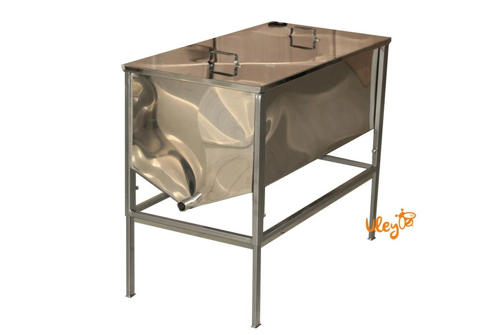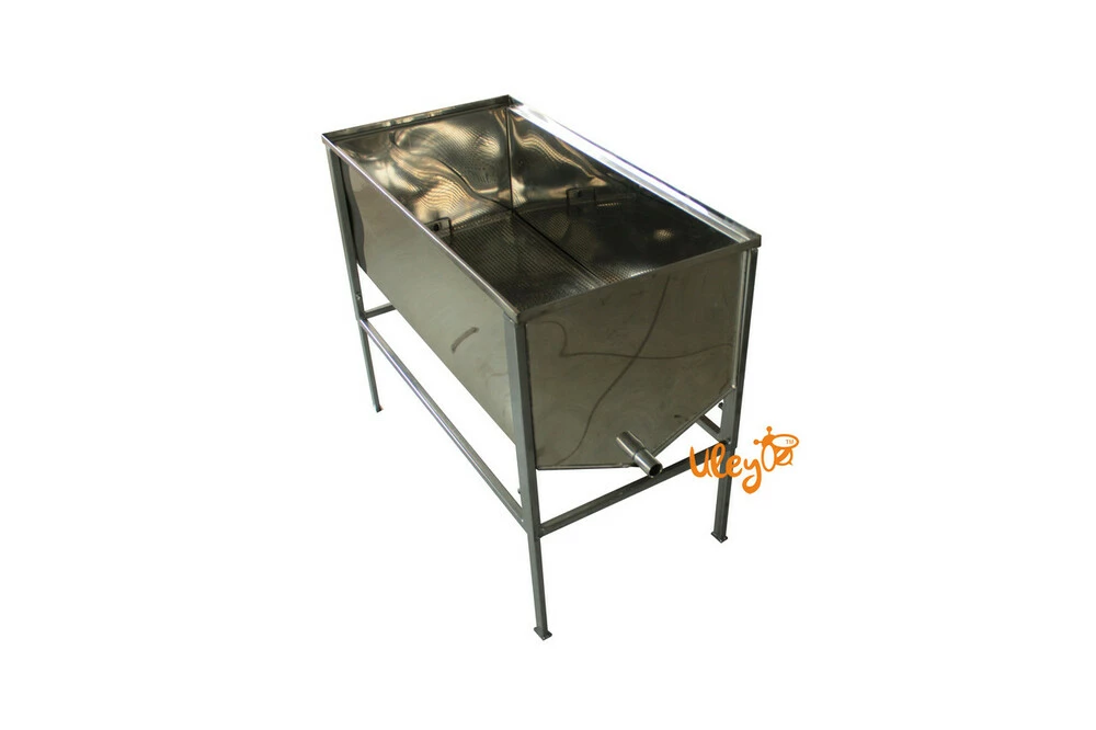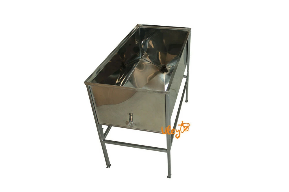 Стол - воскотопка, с крышкой - 1 метр - предназначен для распечатывания медовых рамок и для извлечения воска из старых и использованных соторамок способом вплавления паром. В процессе работы происходит также обеззараживание самих рамок.