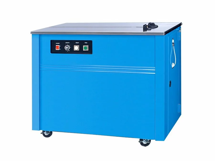 Обв'язувальний стіл Transpak TP201 - напівавтоматична страпінг (стрепінг) машина для обв'язування малих або середніх за розміром товарів поліпропіленовою (ПП) стрічкою. Виробництво компанії Transpak Equipment Corp., Тайвань.