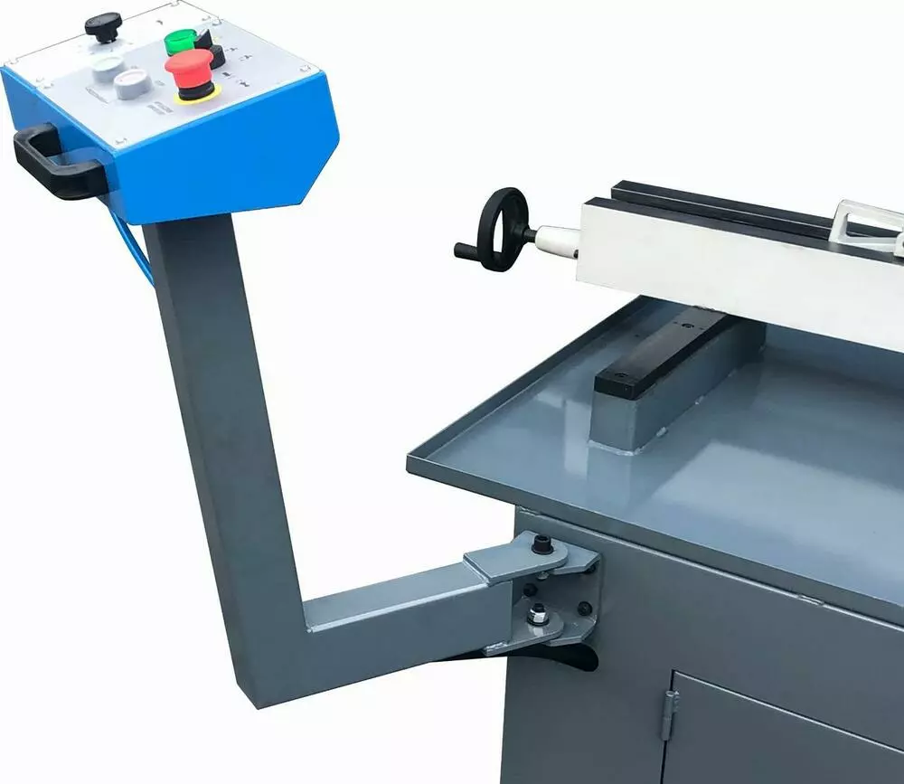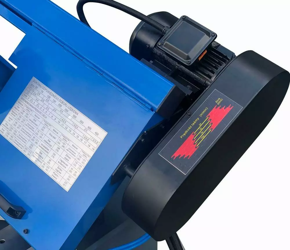 Швидкість ременя регулюється шляхом зміни положення ременя на шківах. Ми можемо вибрати одну з чотирьох швидкостей ріжучої стрічки: 24, 52, 78, 109 м/хв.У нижньому положенні пилки (після різання матеріалу) привід стрічкової пилки та система охолодження автоматично відключаються.