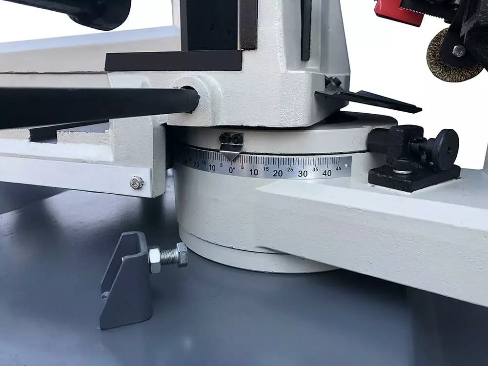 Оператор запускає верстат, натискаючи кнопку пуску, та встановлює швидкість різання. Після завершення різання машина автоматично зупиняється, і оператор вручну піднімає руку у вихідне положення. Ця модель застосовна для штучного та дрібносерійного виробництва, і завдяки своїй міцній конструкції вона може пиляти широкий спектр матеріалів, включаючи нержавіючу сталь, інструментальну сталь, тверді матеріали та профілі. Пристрій дозволяє різати матеріал під кутом, повертаючи голову вліво та вправо.