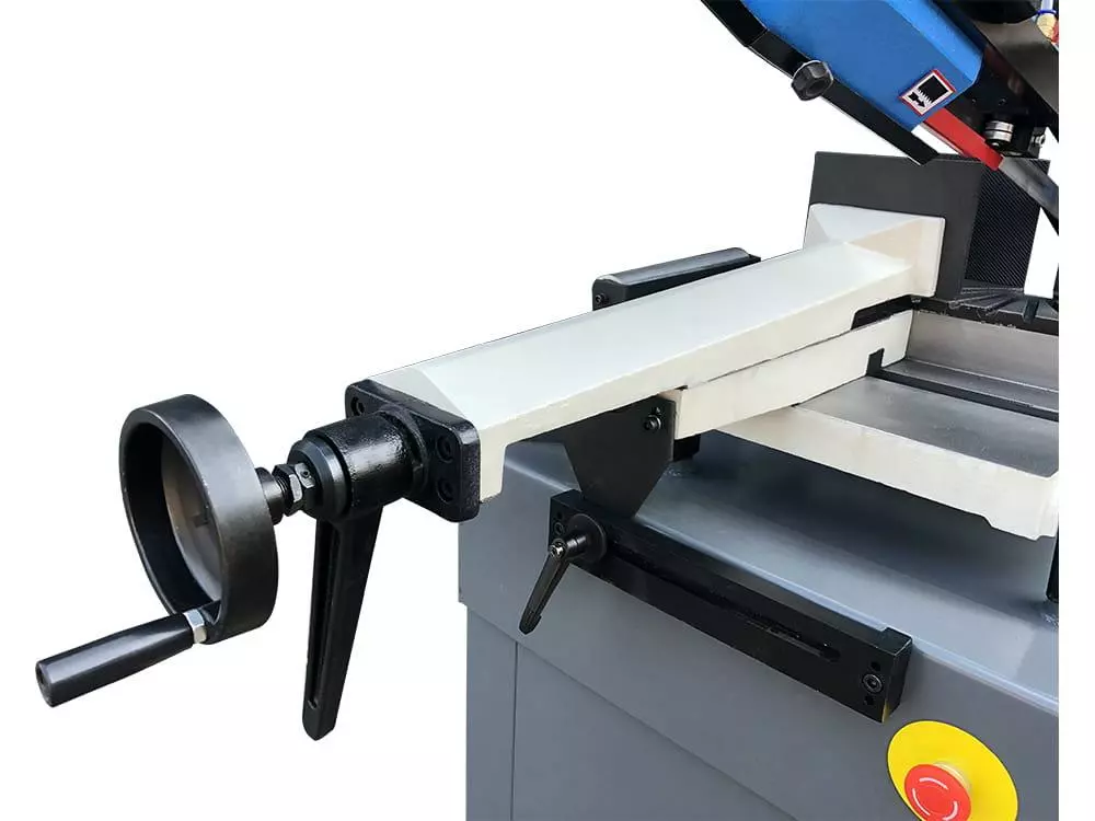 Швидкість опускання пилки регулюється гідроциліндром.Верстат обладнаний натяжною пружиною та лещатами швидкого стиснення.