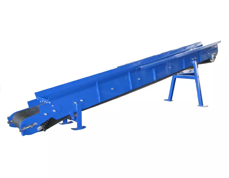 Стрічковий транспортер (конвеєр) використовується для транспортування різних матеріалів на висоту від 3 до 5 метрів, під кутом підйому до 17 градусів. Використання контурних бічних поверхонь запобігає висипанню тріски.