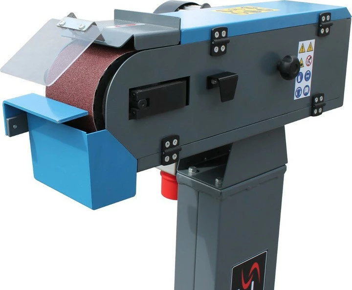 Верстат оснащений шліфувальною стрічкою шириною 100 мм і довжиною 1220 мм, і їхня заміна дуже проста і швидка. Шліфувальний верстат має 2 швидкості стрічки: 19 та 38 м/с.