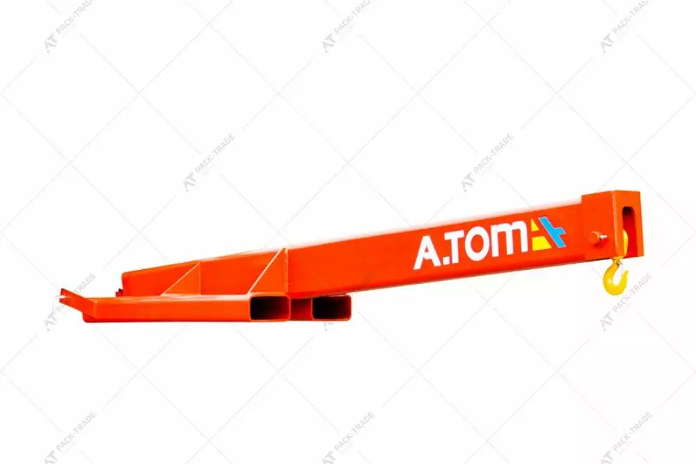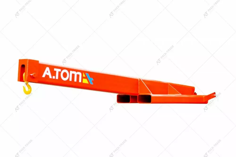 Стріла кранова на вилковий навантажувач - А.ТОМ 2700 F — це навісне обладнання, призначене для переміщення вантажів нестандартної форми, а також вантажів, які неможливо транспортувати на піддонах. Стріла кранова кріпиться до каретки вилкового навантажувача, а підіймання та опускання вантажу відбувається завдяки переміщенню каретки вздовж щогли. Це дає можливість зручно працювати з непалетованими вантажами, що знаходяться у важкодоступних місцях, не залучаючи при цьому додаткову кранову техніку.