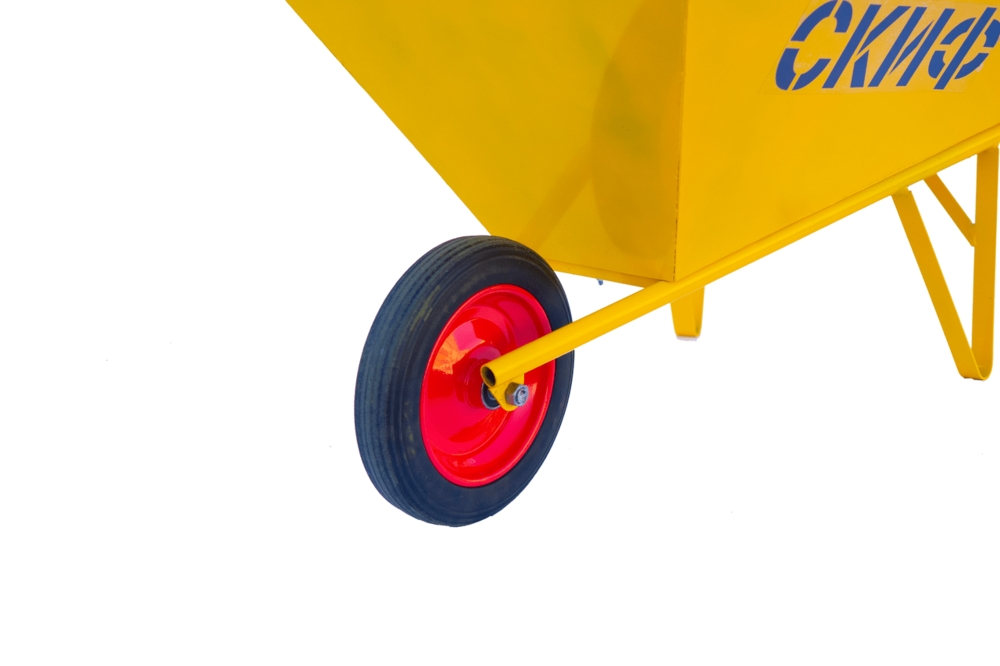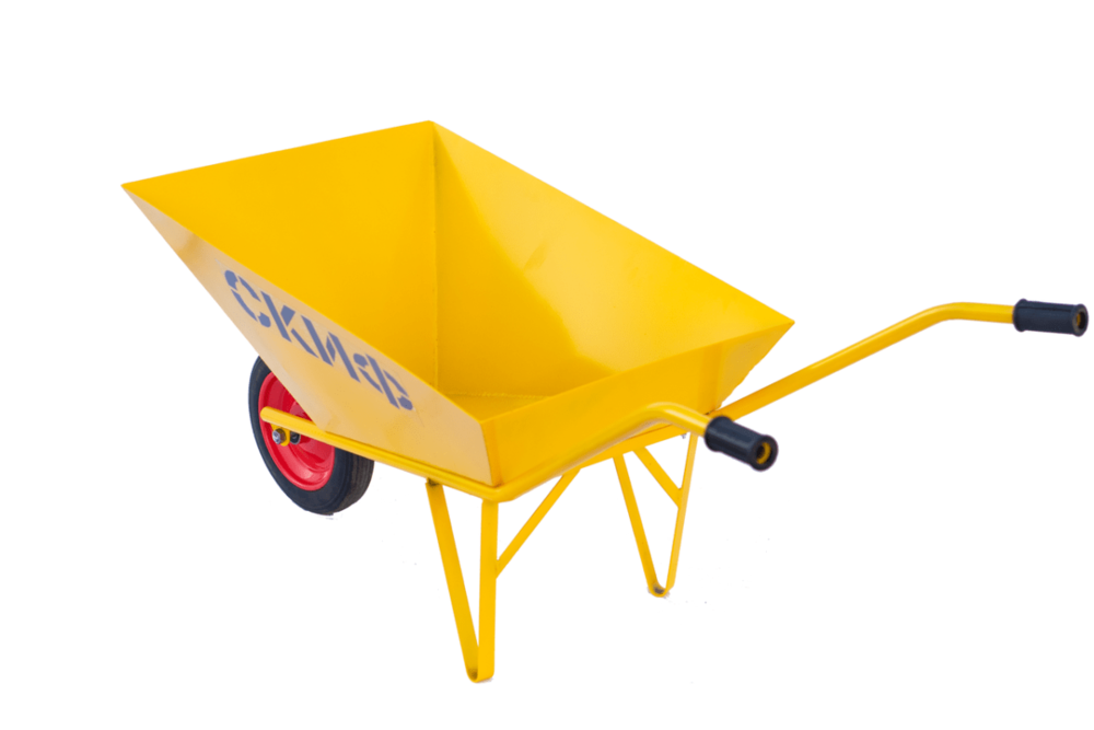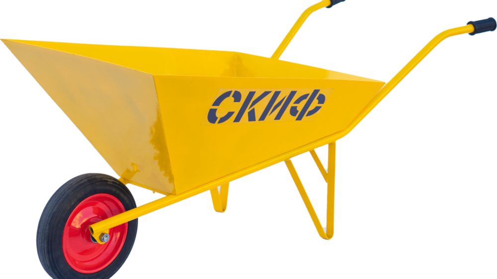 В строительной тачке предусмотрено литое большое колесо и упоры, обеспечивающие устойчивость.