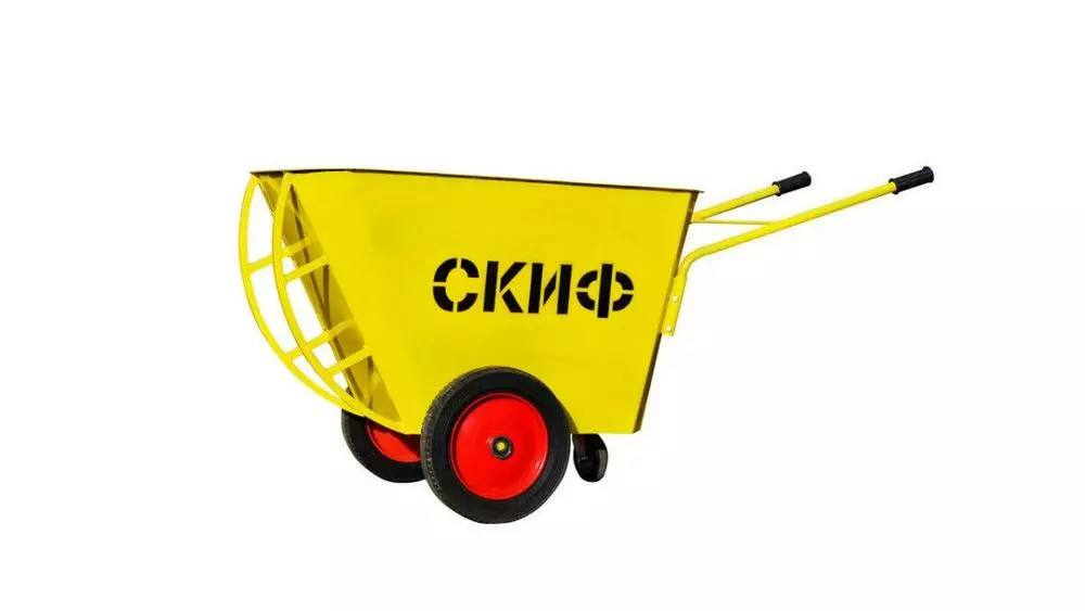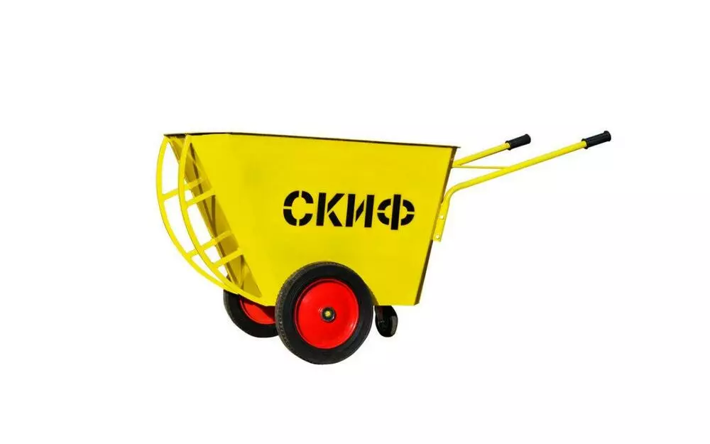 Рукоятки тачки имеют резиновые покрытые и предохраняет руки от скольжения.