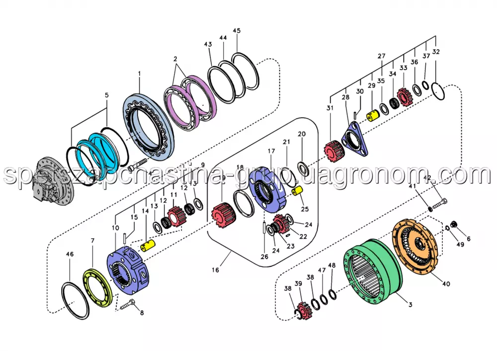 16.   [1] Планетарна шестерня (водило) редуктора ходу Volvo EC240B NLC EC210