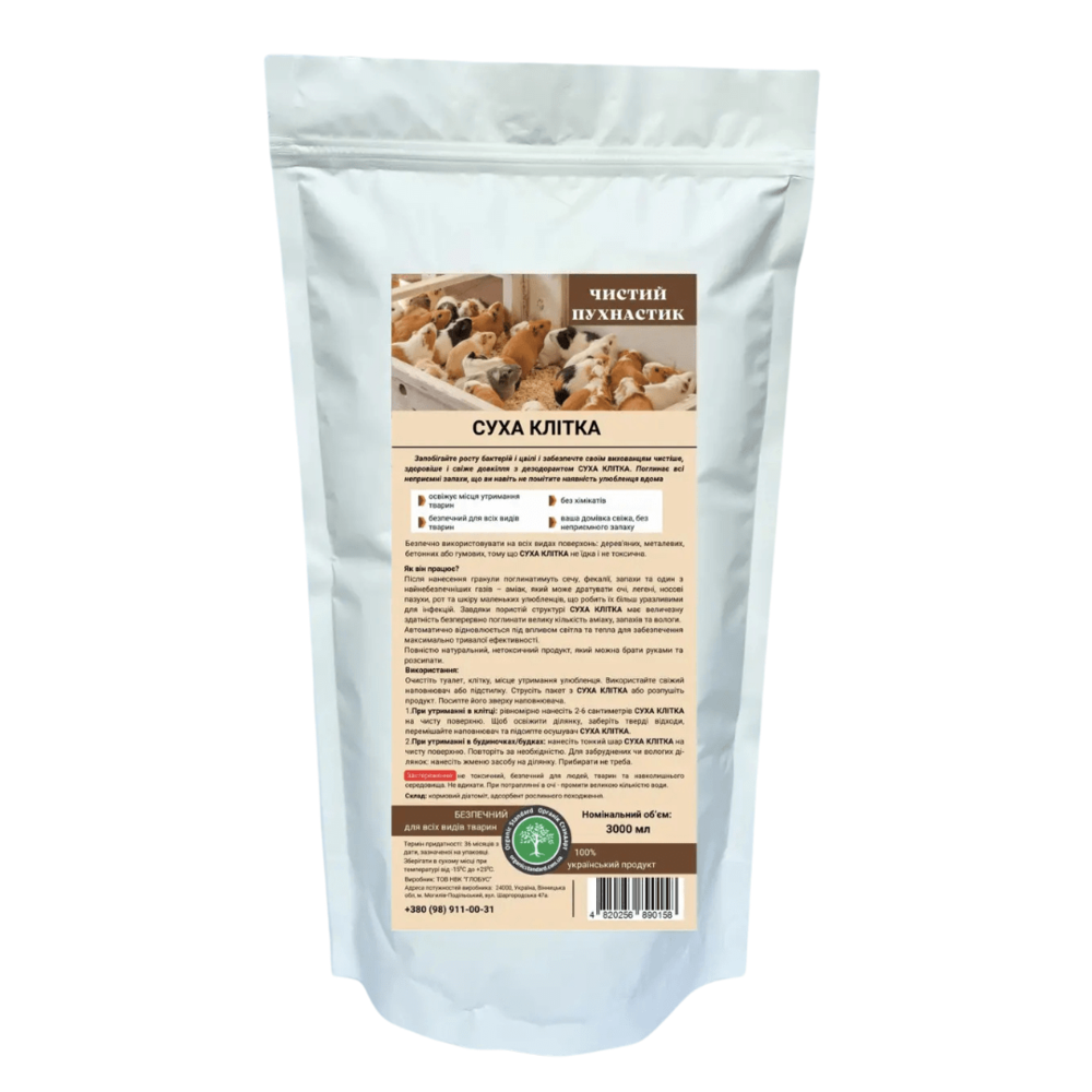 Суха клітка Чистий пухнастик дезодорант-осушувач для утримання мілких тварин, від запаху та бактерій 3 л