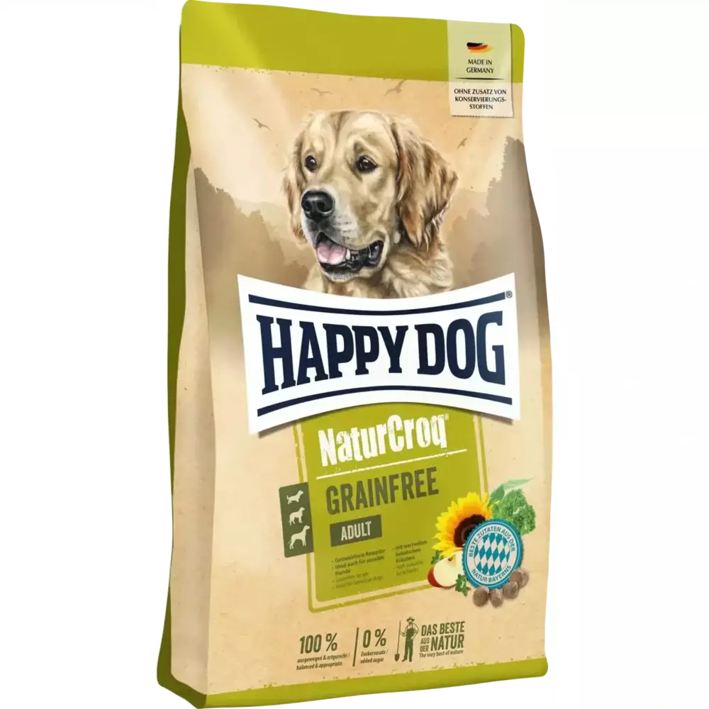 Сухий беззерновий корм Happy Dog Naturcroq Grainfree для дорослих собак з птицею та лососем – це 100% збалансований та повноцінний корм для собак.