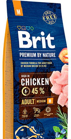 Brit Premium Adult М – це корм для дорослих собак середніх порід, вагою від 10 кг до 25 кг.
