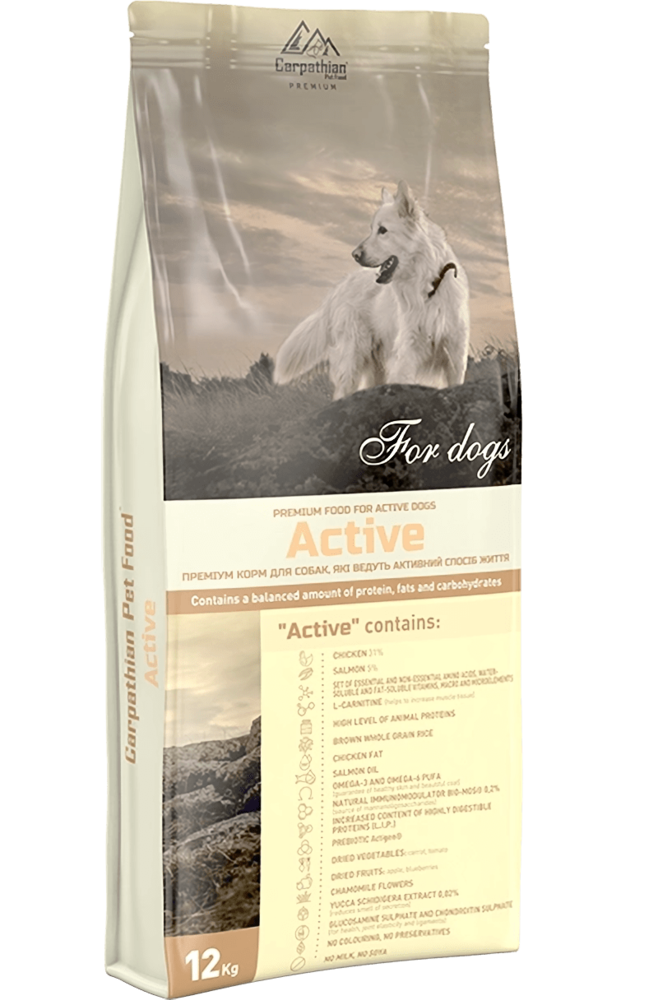 Тільки повноцінне харчування Carpathian Pet Food «Active» для активних собак здатне забезпечити всіма необхідними речовинами для нормальної життєдіяльності Вашого улюбленця.